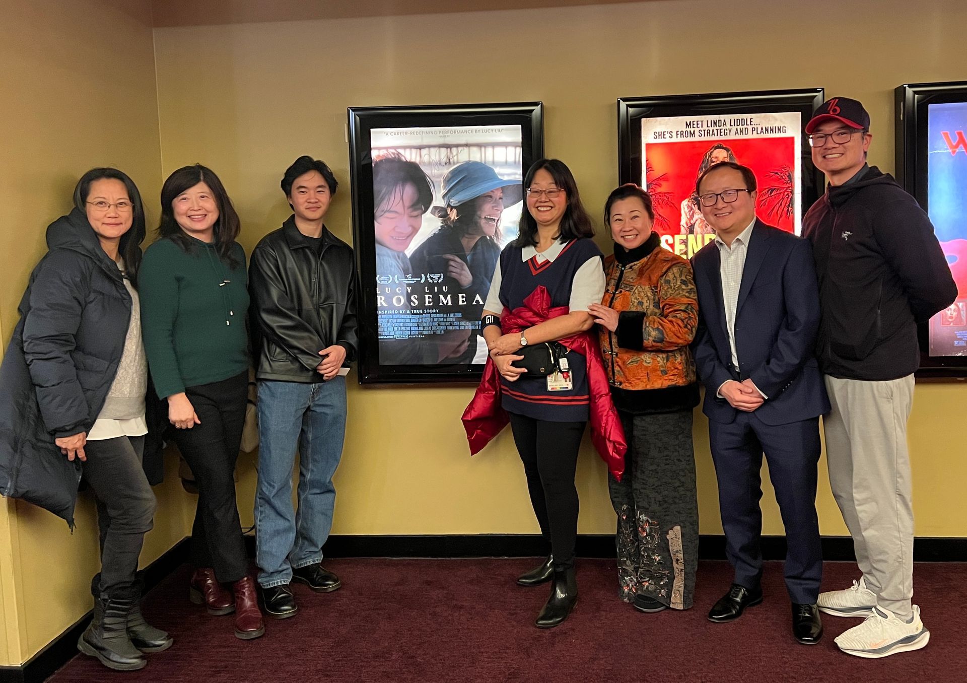 从右到左:Dr. Steven Sust --斯坦福大学副教授,精神科医生;刘先进--美国华裔精神健康联盟MHACC副执行长;彭一玲--本文的共同作者,美国华裔精神健康联盟MHACC创办人及执行长;Dr. Rona Hu --斯坦福大学教授,精神科医生,斯坦福医院急诊室医疗主任;Lawrence Shou--饰演电影《柔似蜜》儿子Joe;张海云博士-美国华裔精神健康联盟MHACC前理事;Olivia