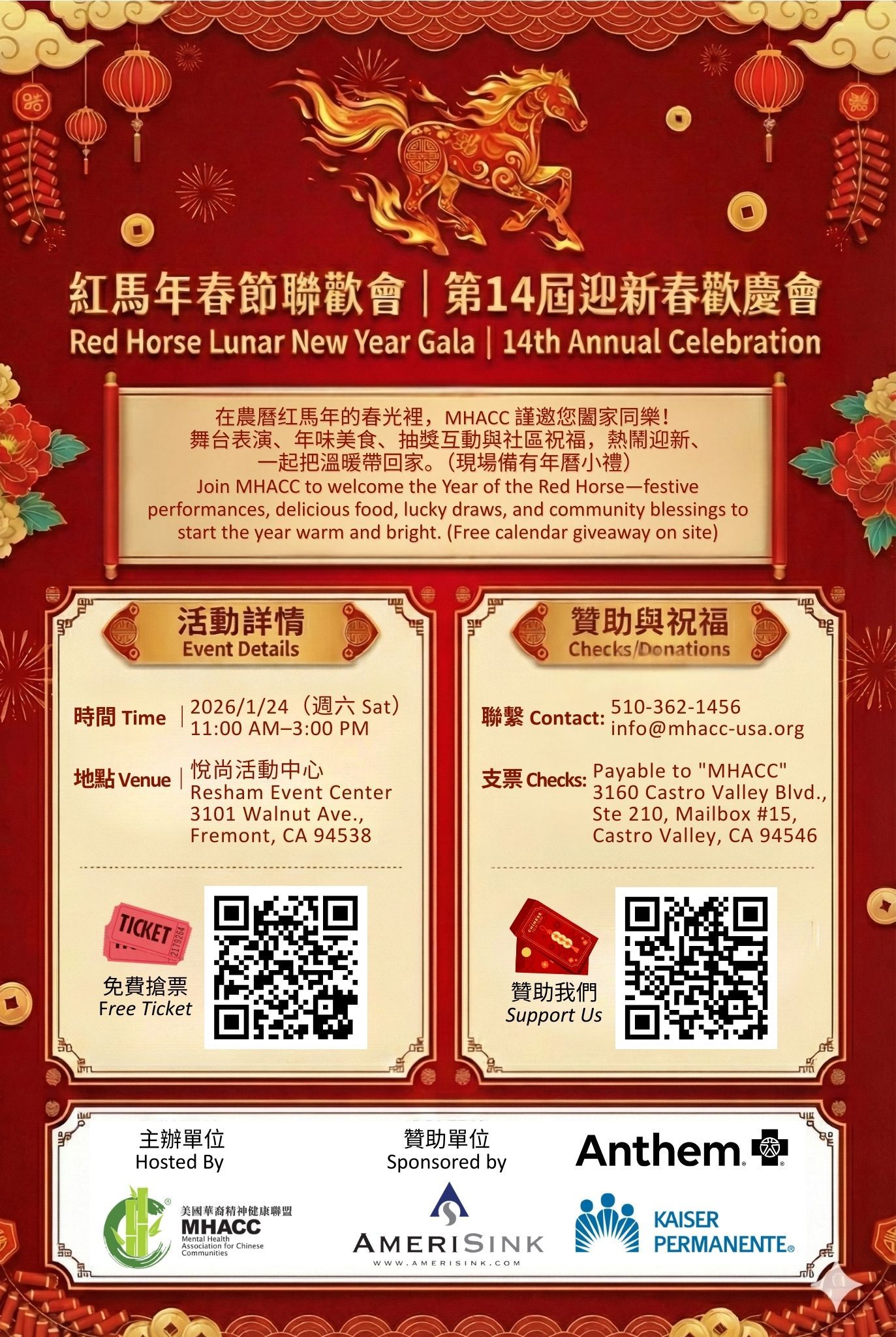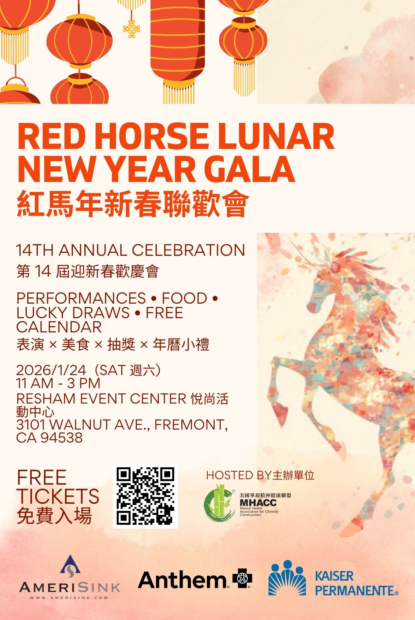 MHACC is a hosting a 14th Annual Lunar New Year Party! 2026 marks the rare "Red Horse" year, occurring just once every 60 years in the Chinese zodiac. Join us on